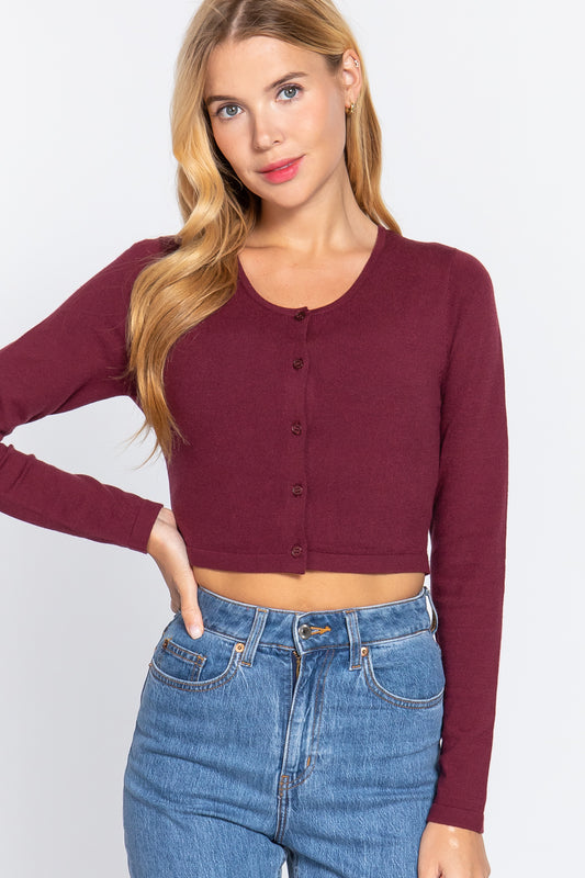Long Slv Check Crop Sweater