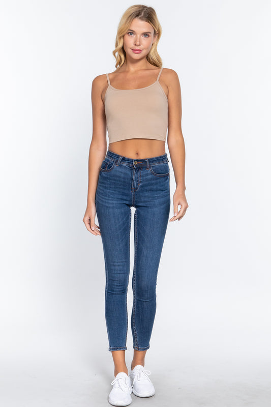 Round Neck W/removable Bra Cup Cotton Spandex Bra Top